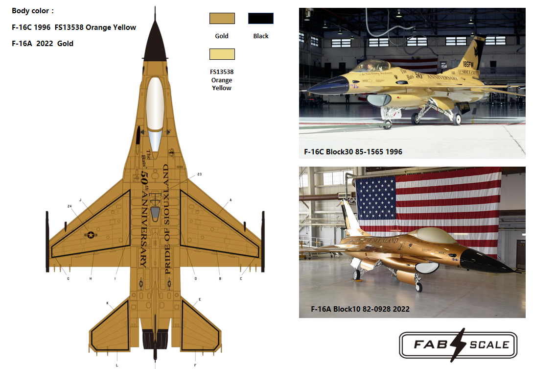 FabScale Studio - 1/48 USAF Golden Viper Lockheed-Martin F-16C Block 30 /F-16A Block 10 185th Fw 1996/2022