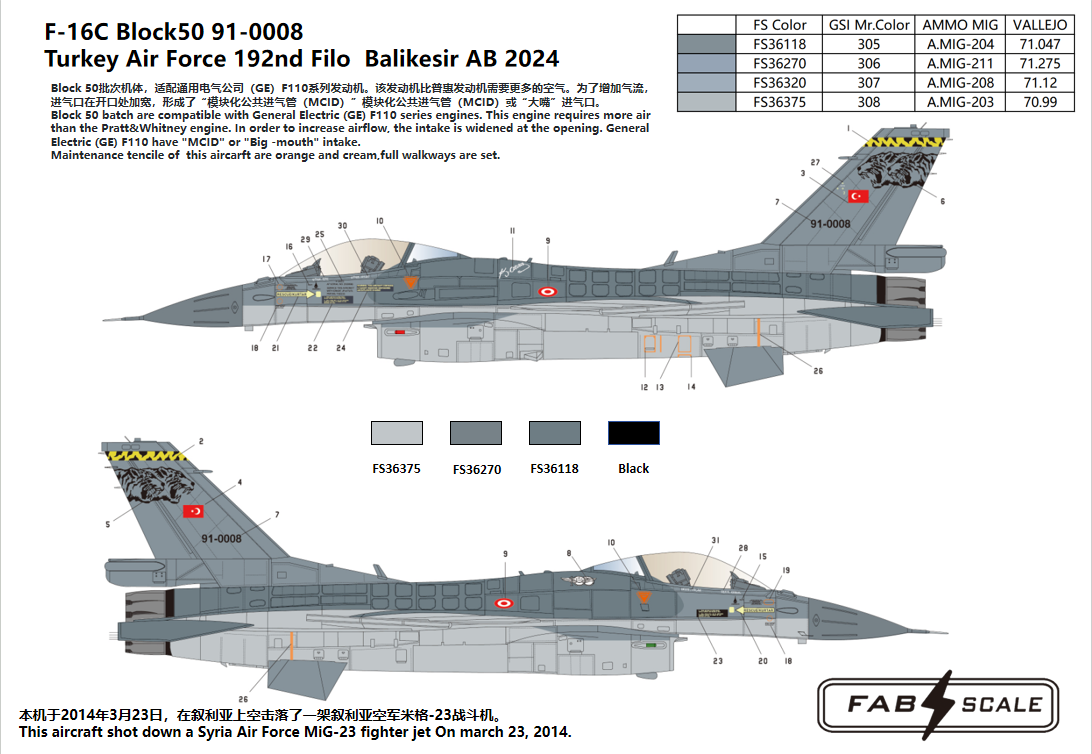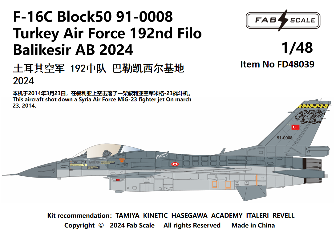 FabScale Studio - 1/48 Lockheed-Martin F-16C Block 50 91-0008 Turkey Air Force 192nd Filo Balikesir Ab 2024