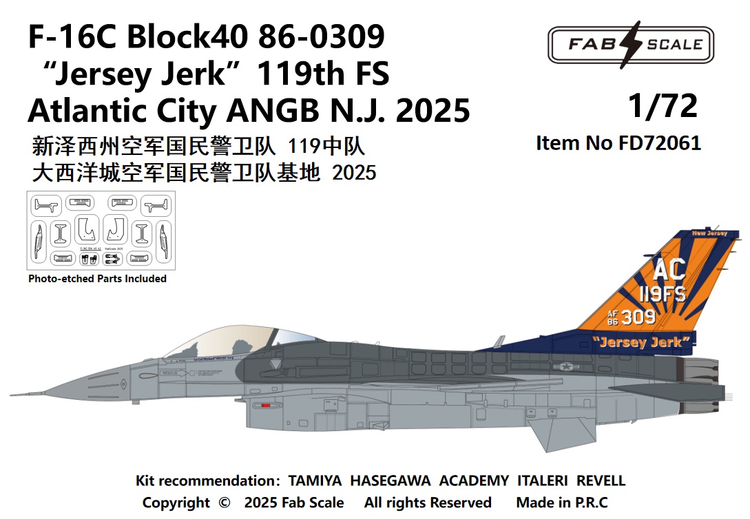 FabScale Studio - 1/72 Lockheed-Martin F-16C Block40 USAF 'Jersey Jerk'119th FS