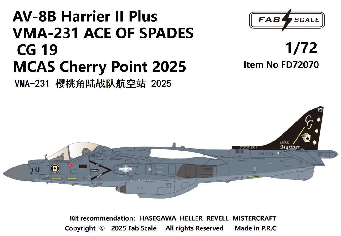 FabScale Studio - 1/72 McDonnell-Douglas AV-8B Harrier II Plus VMA-231 Ace Of Spades Cg 19 Mcas Cherry Point 2025
