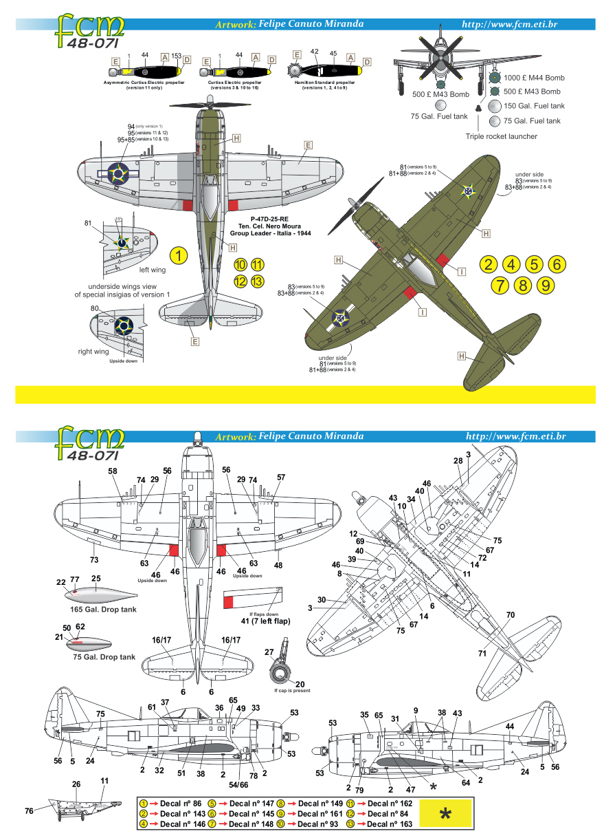 FCM - 1/48 Republic P-47D thunderbolt Brazil WW2 & post war double set
