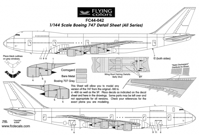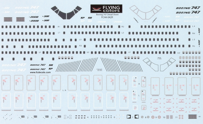 Flying Colors - 1/144 Boeing 747 Detail sheet. Inc windows, windshield, doors, logos