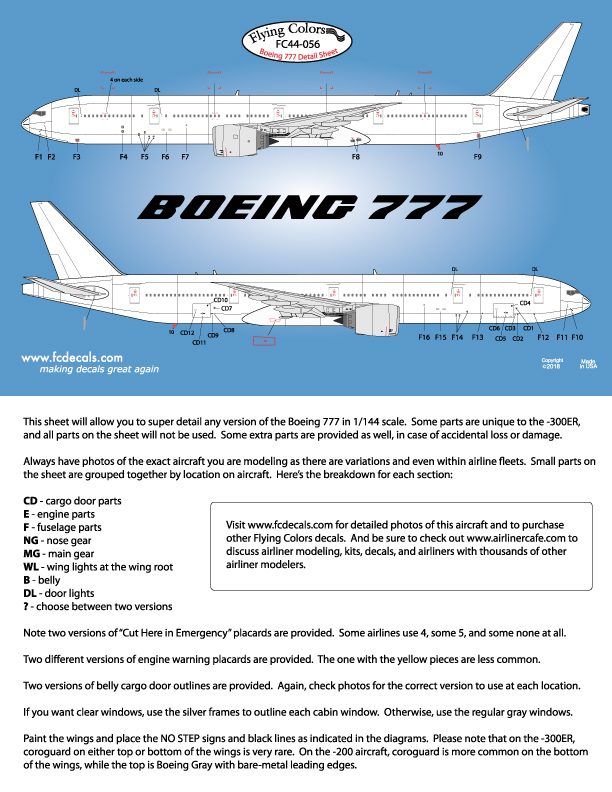 Flying Colors - 1/144 Boeing 777 Detail Sheet