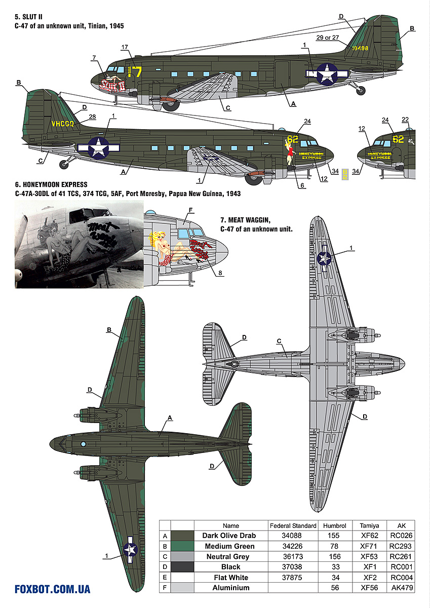 Foxbot Decals - 1/144 Douglas C-47 Skytrain/Dakota 'Pin-Up Nose Art and Stencils' Academy, Minicraft Model, Roden. Eastern Express kits