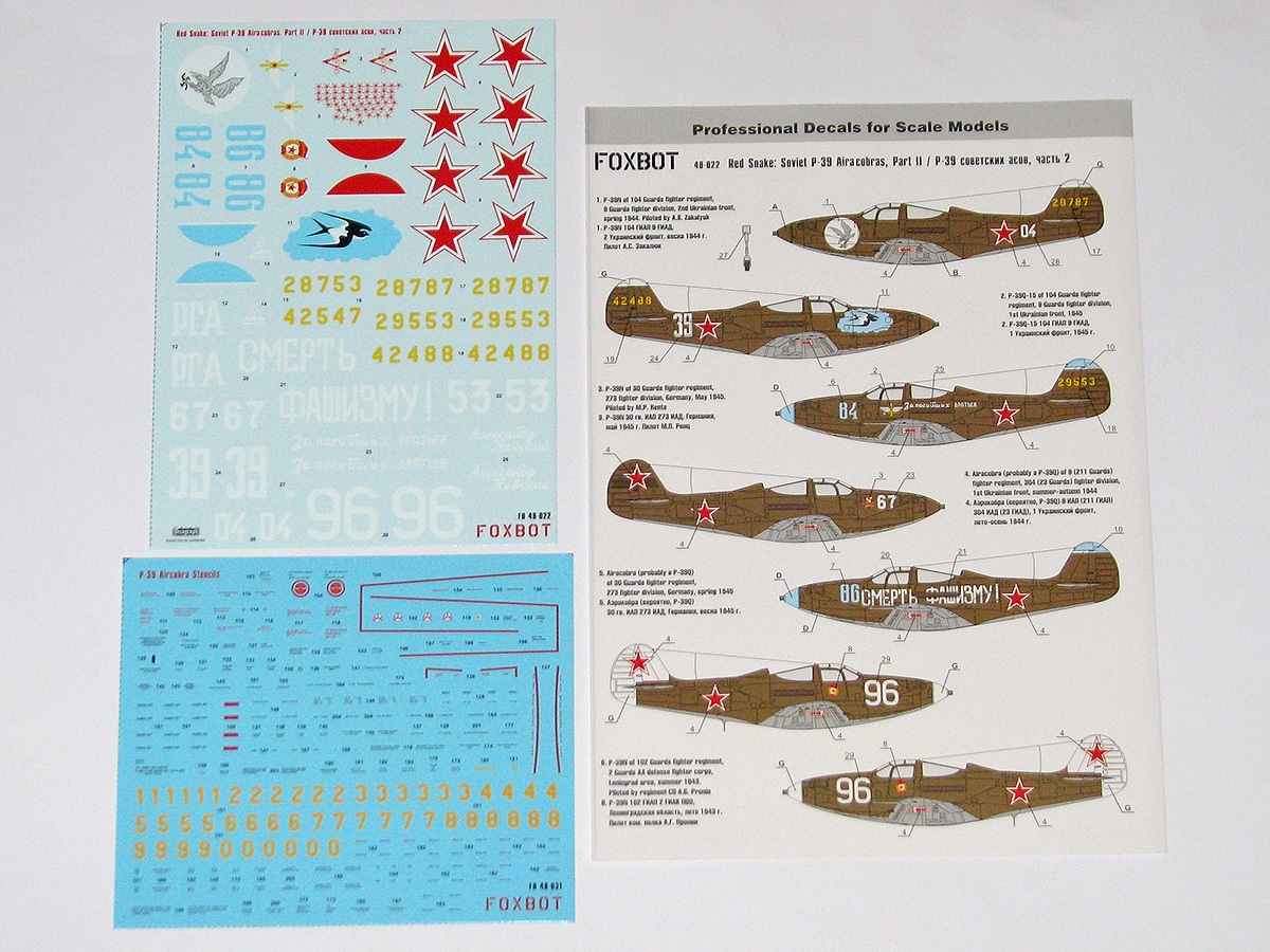 Foxbot Decals - 1/48 Red Snake: Soviet Bell P-39 Airacobras and Stencils, Part 2 (for Accurate Miniatures, Eduard, Hasegawa, Monogram, Revell kits)