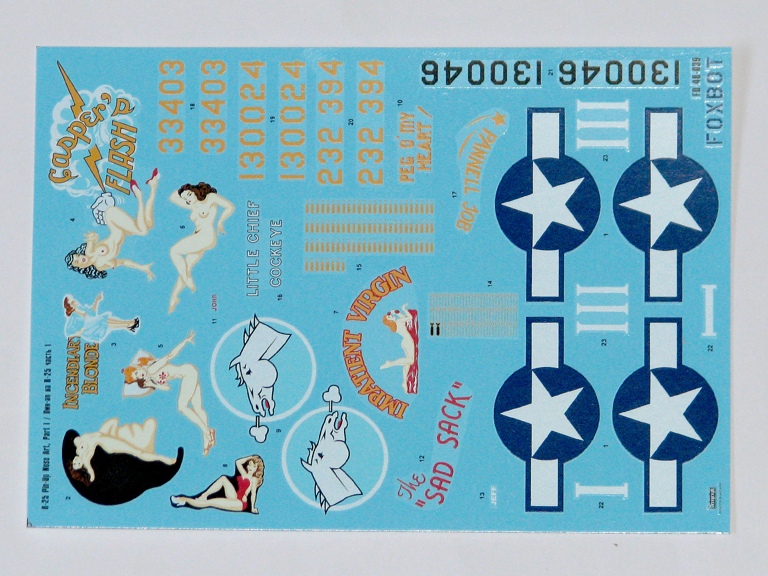 Foxbot Decals - 1/48 North-American B-25C/D Mitchell Pin-Up Nose Art & Stencils Part Part 1