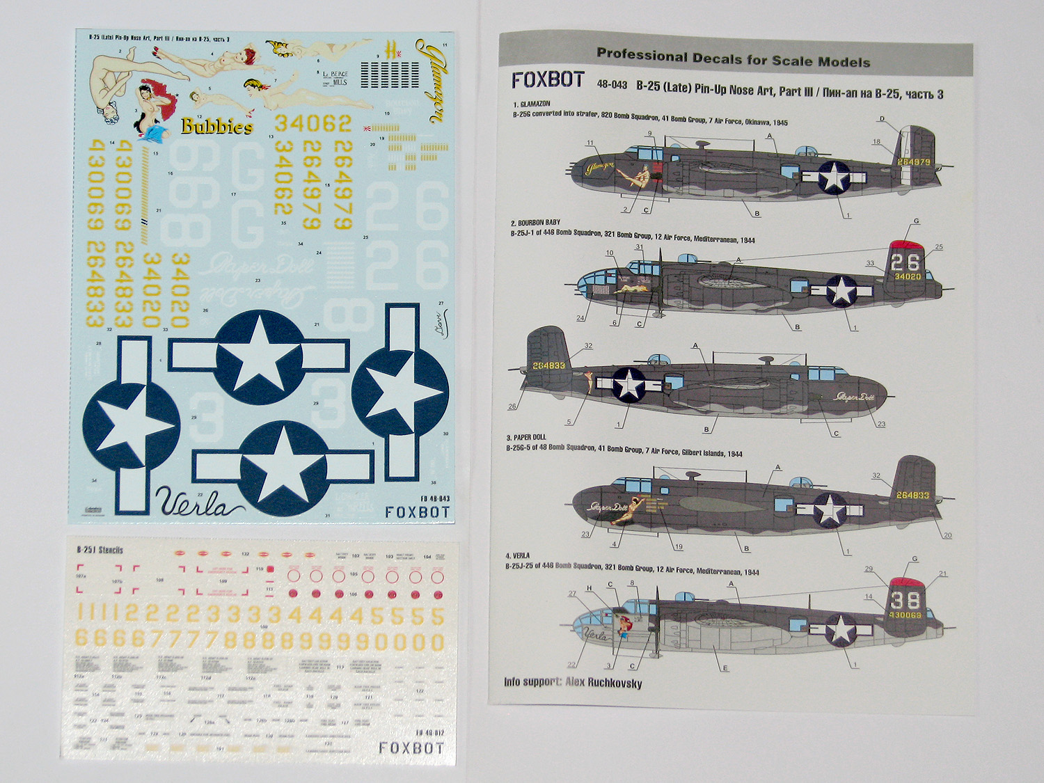 Foxbot Decals - 1/48 North-American B-25G/H/J Mitchell (Late) 'Pin-Up Nose Art and Stencils' Part Part 3 Academy, Accurate Miniatures, Hasegawa, Monogram, Pro Modeler, Revell kitsNew