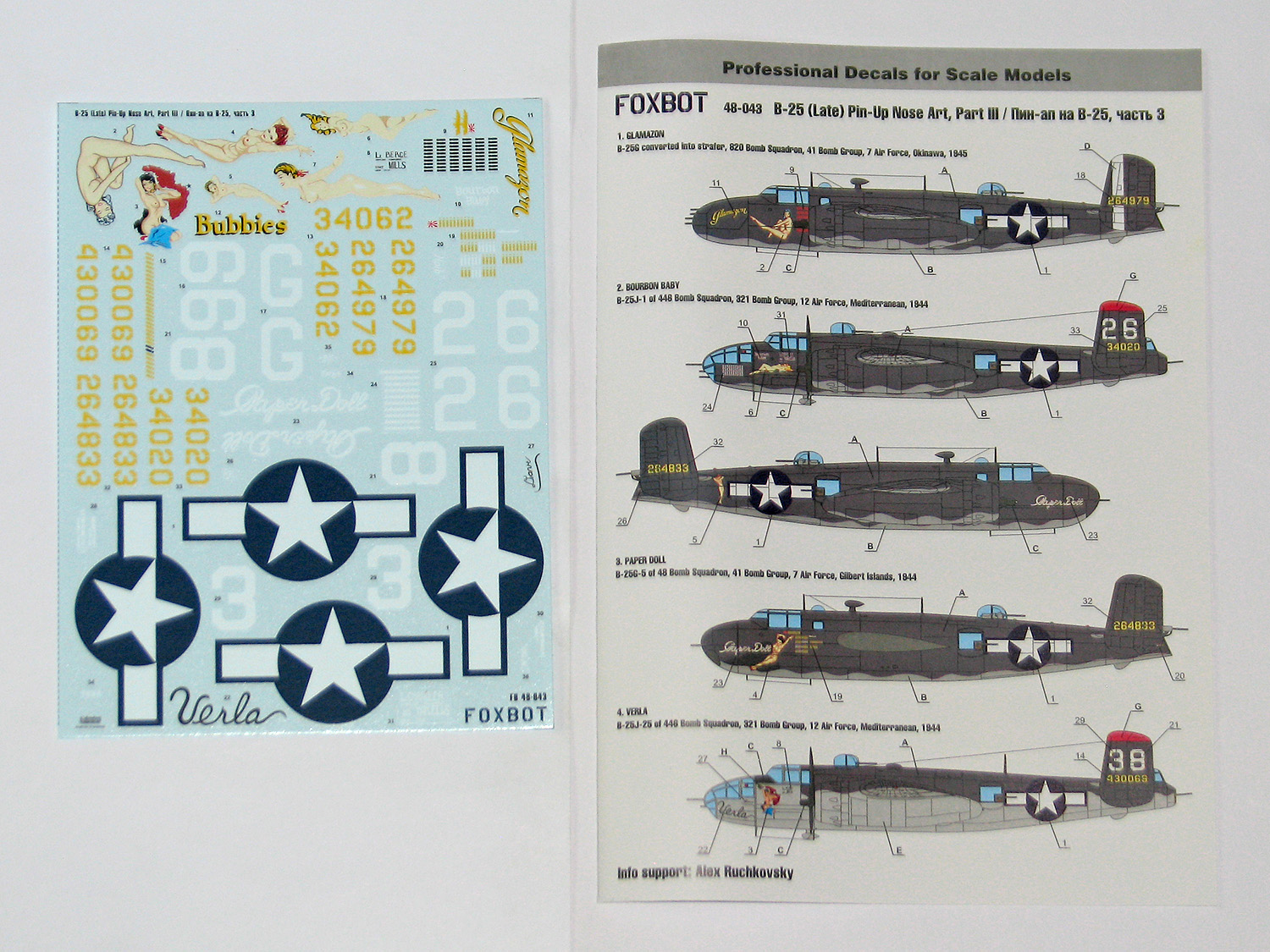 Foxbot Decals - 1/48 North-American B-25G/H/J Mitchell (Late) 'Pin-Up Nose Art' Part 3 (Stencils not included) Academy, Accurate Miniatures, Hasegawa, Monogram, Pro Modeler, Revell kits