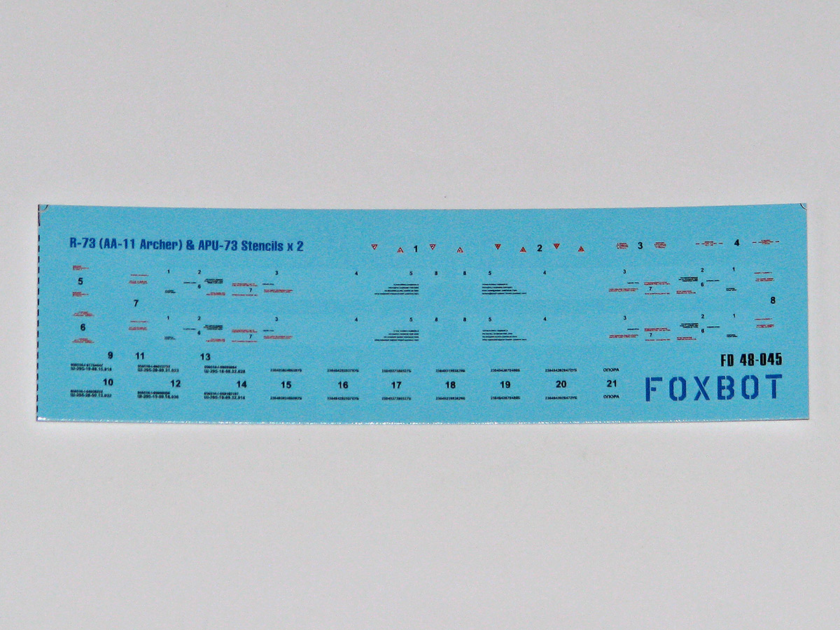 Foxbot Decals - 1/48 Stencils for Soviet Missile R-73 (AA-11 Archer) & APU-73 Stencils on Soviet aircraft kits