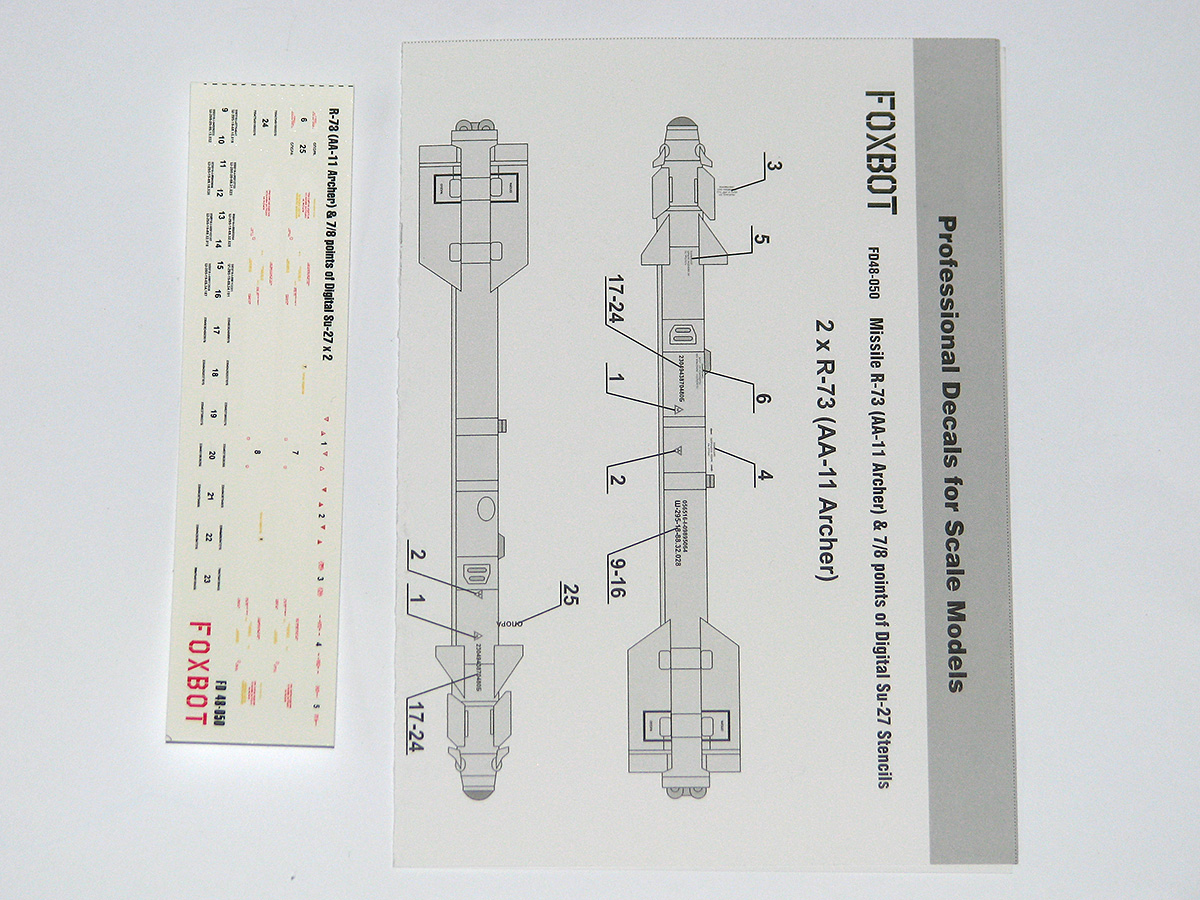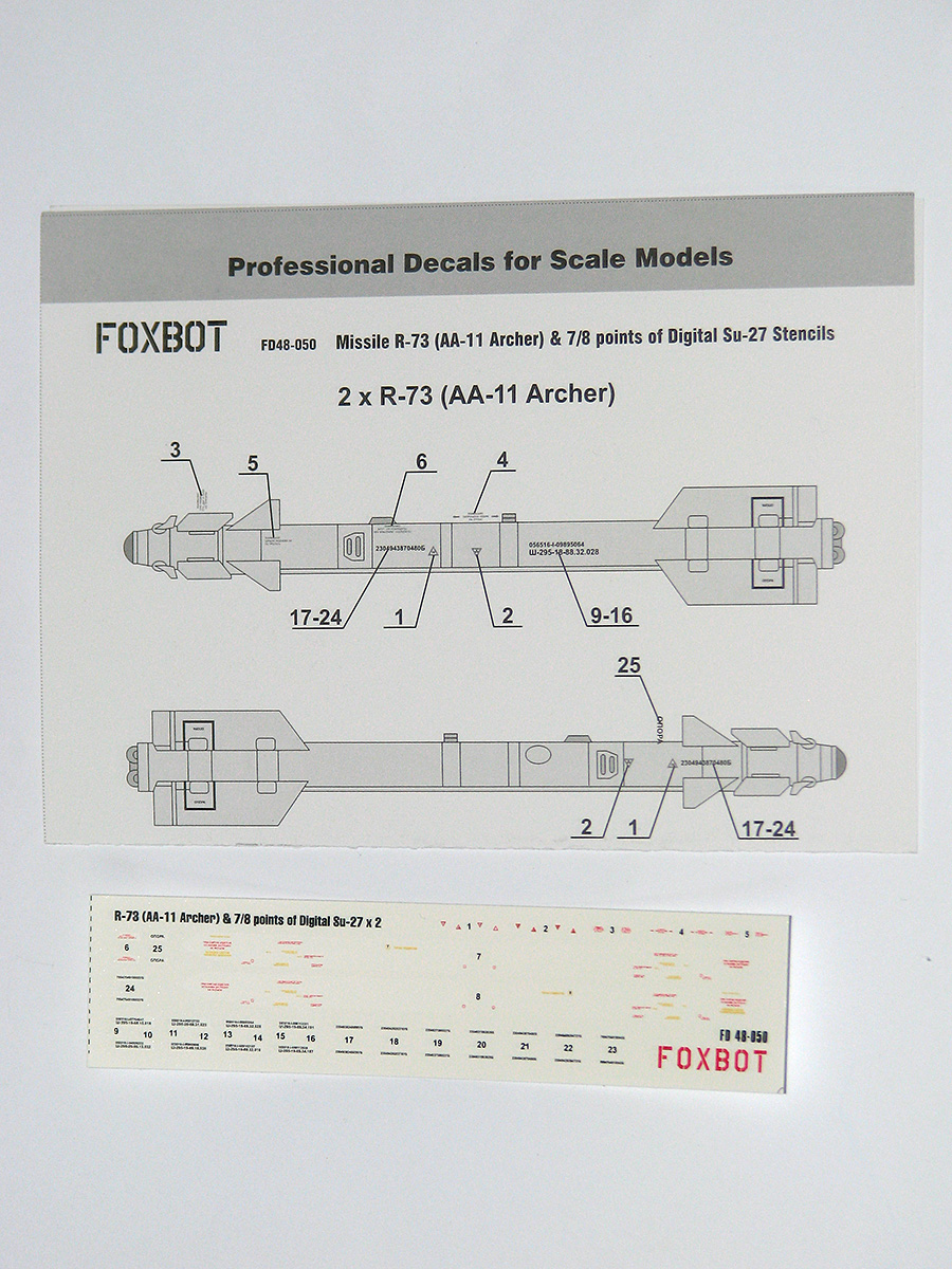 Foxbot Decals - 1/48 Stencils for Missile R-73 (AA-11 Archer) & 7/8 points of Digital Sukhoi Su-27