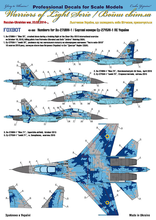 Foxbot Decals - 1/48 Numbers for Sukhoi Su-27UBM, Ukranian Air Forces, digital camouflage (for Academy, Eduard, HobbyBoss, Great Wall Hobby and Kitty Hawk Model kits)
