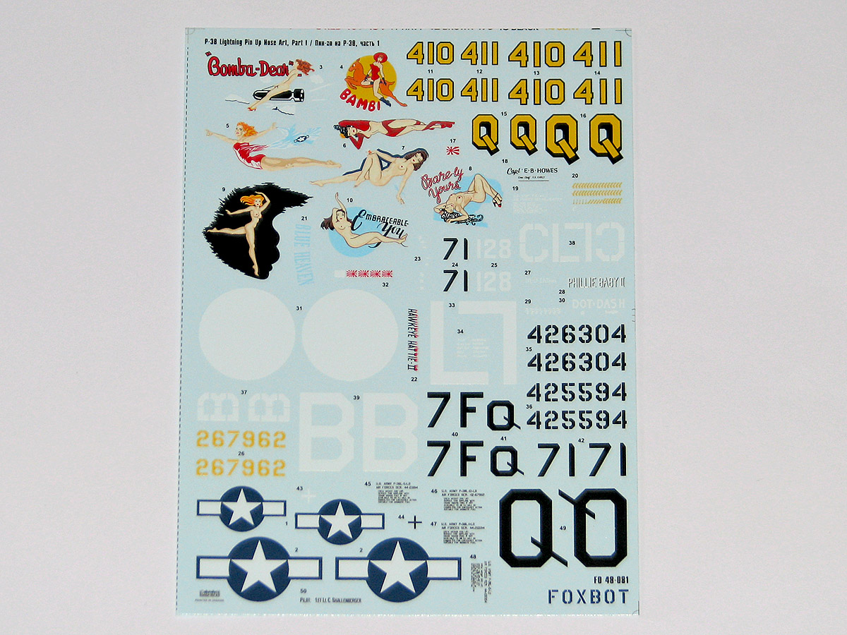Foxbot Decals - 1/48 Lockheed P-38 Lightning Pin-Up Nose Art, Part 1
