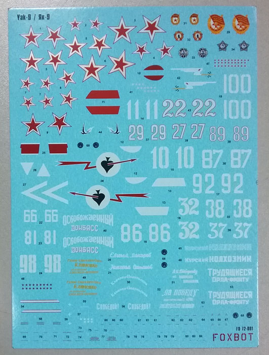 Foxbot Decals - 1/72 Yakovlev Yak-9 for Airfix, ICM, Alanger, Dakoplast, Eastern Express kits