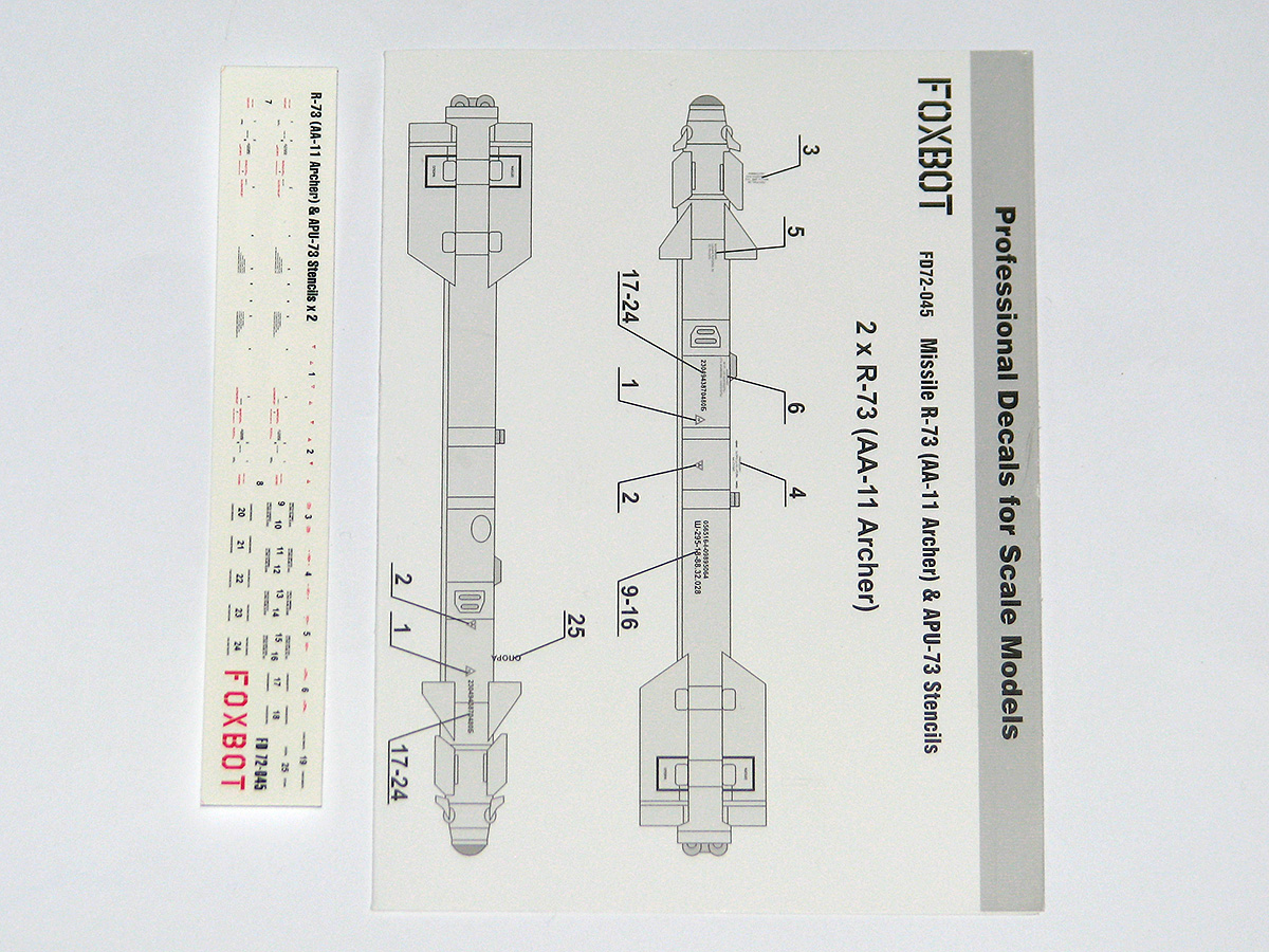 Foxbot Decals - 1/72 Stencils for Missile R-73 (AA-11 Archer) & APU-73