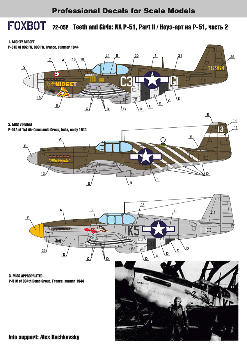 Foxbot Decals - 1/72 North-American P-51 Mustang Nose art, Part 2 (for Academy, Az model, Airfix, Brengun, Hasegawa, Heller, HobbyBoss, Revell, Italeri, KP, Monogram, Special Hobby and Tamiya kits)