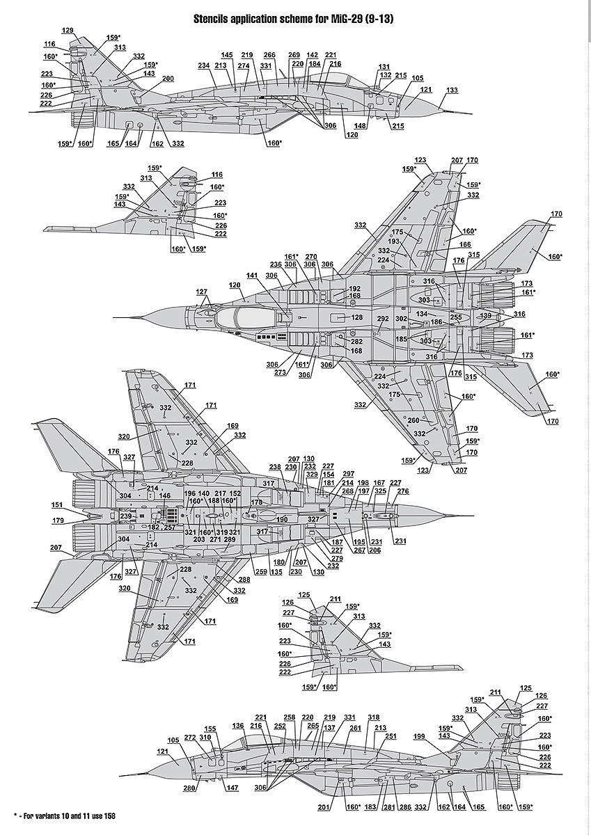 1/72 Stencils for Mikoyan MiG-29 9-12, 9-13, 9-51