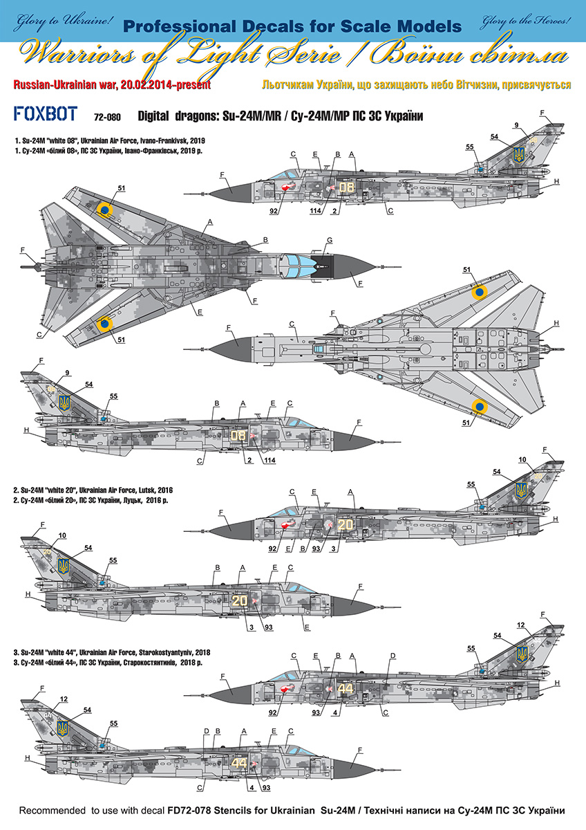 Foxbot Decals - 1/72 Digital Sukhoi Su-24M/MR, Ukrainian Air Force and Stencils Trumpeter, Dragon