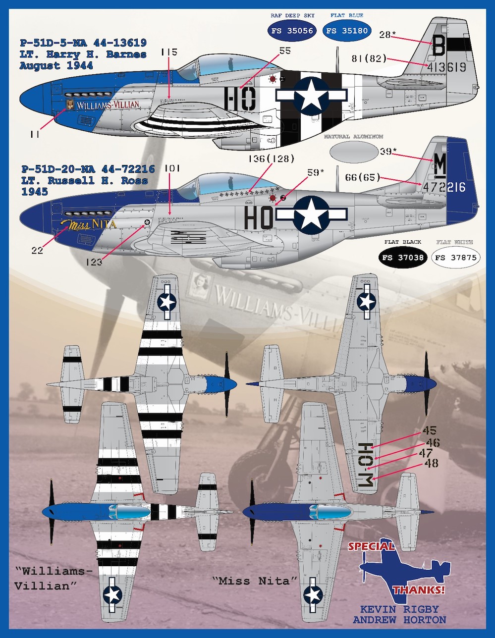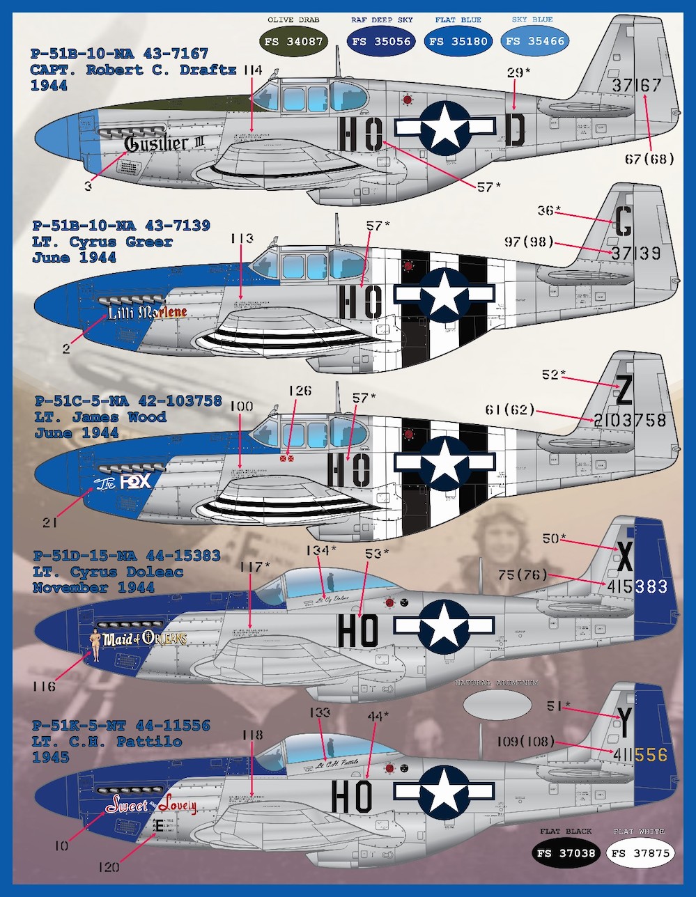 Furball Aero-Design - 1/48 'Meyers Maulers Part2' 48-095 covers 22 options for 347th Fighter Squadron North-American P-51B and P-51D Mustangs