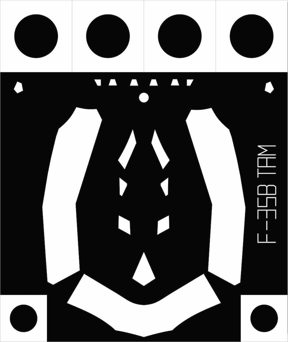 Furball Aero-Design - 1/48 Tamiya F-35B. This set includes canopy masks, wheel hub masks, nose sensor masks. and sensor windows for Tamiya