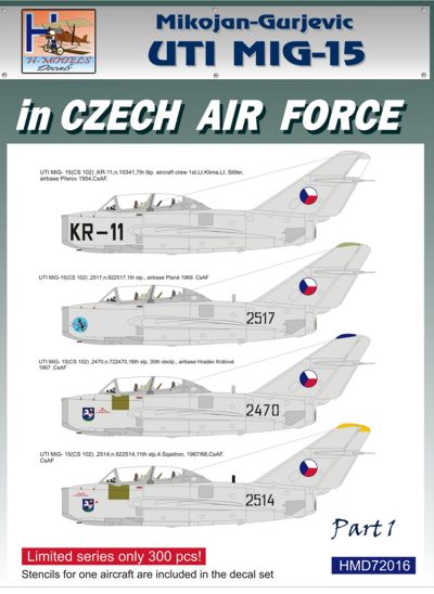 H-Model Decals - 1/72 Mikoyan MiG-15UTI in CzAF, Pt.1