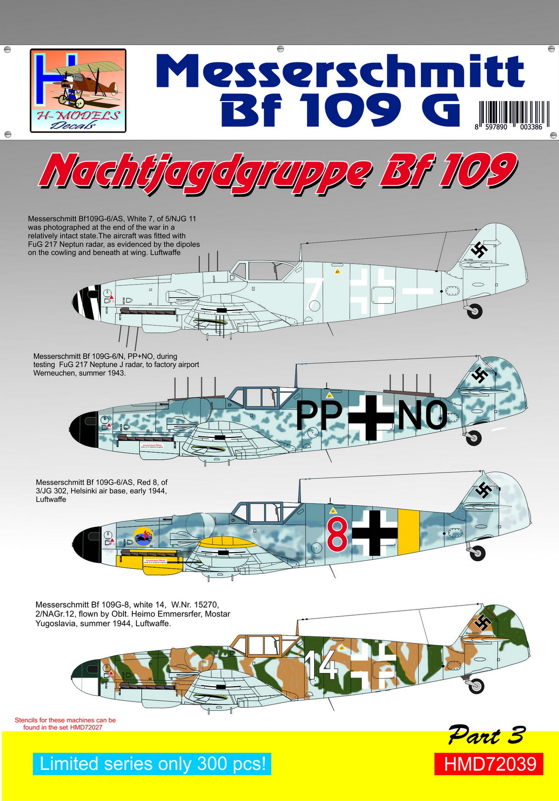 H-Model Decals - 1/72 !!! Messerschmitt Bf-109G NJGr Messerschmitt Bf-109, Pt.3