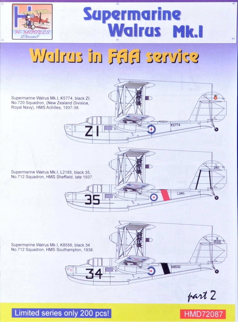 H-Model Decals - 1/72 Westland Walrus Mk.I in FAA Service, Pt.2