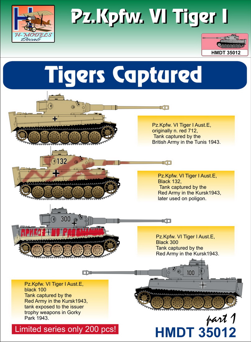 H-Model Decals - 1/35 Pz.Kpfw.VI Tiger I Captured Tigers, Pt.1