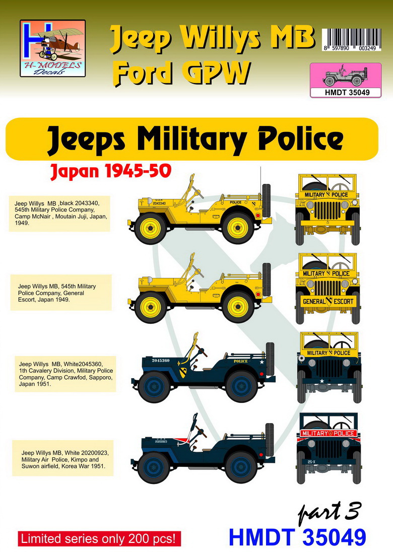 H-Model Decals - 1/35 Willys Jeep MB/U.S. Ford Gpw Jeeps Military Police, Pt.3 Japan 1945-50