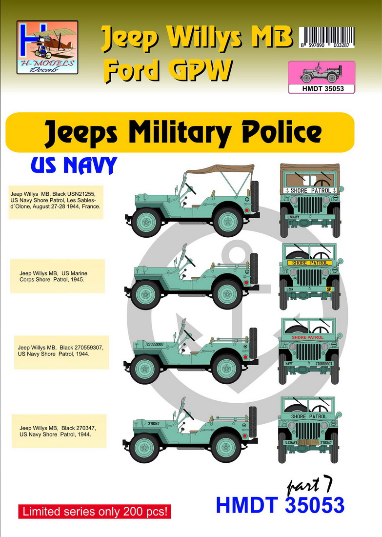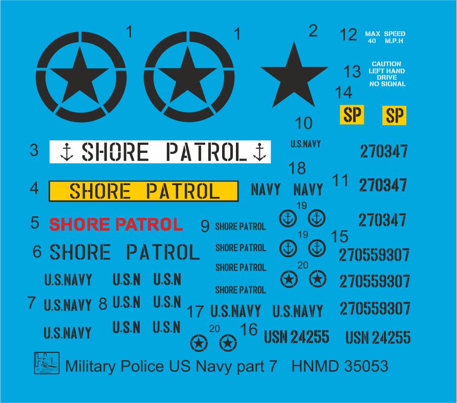 H-Model Decals - 1/35 Willys Jeep MB/U.S. Ford Gpw Jeeps Military Police, Pt.7 USN