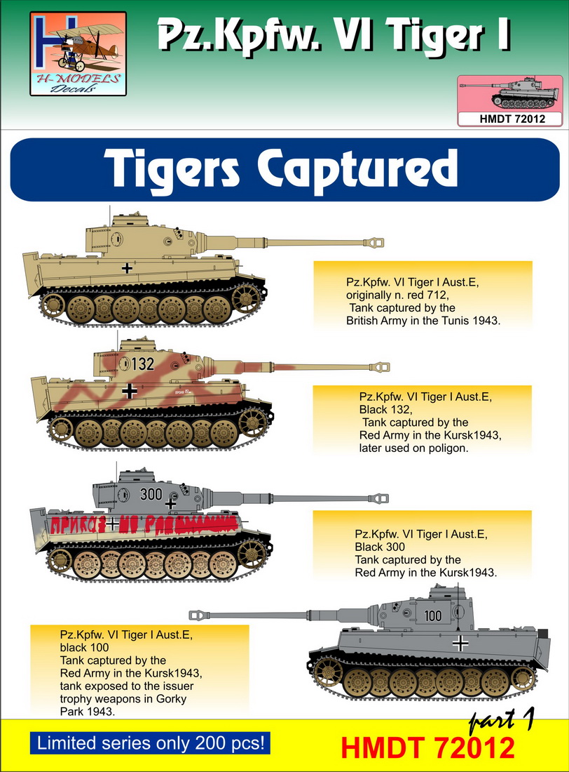 H-Model Decals - 1/72 Pz.Kpfw.VI Tiger I Captured Tigers, Pt.1