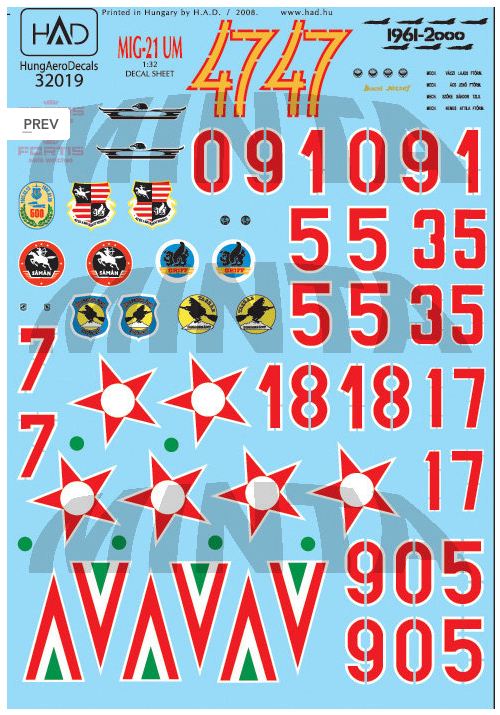 HAD - 1/32 Decal MiG-21 UM (Hun.AF 905, 907 091, 55, 35)