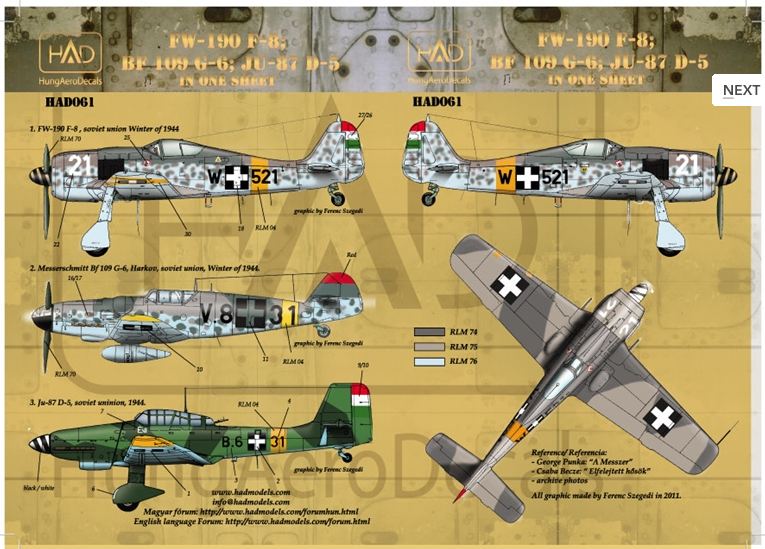 HAD - 1/48 Decal Me Bf 109 G-6, Ju-87 D-5, Fw-190 F-8