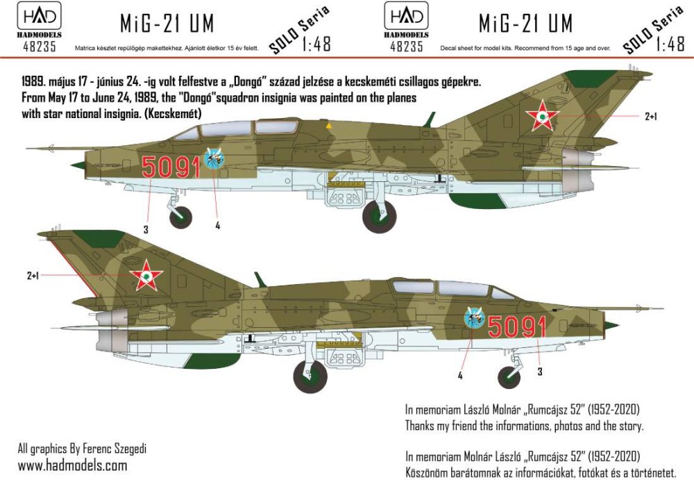 HAD - 1/48 Decal MiG-21 UM HUNAF 5091 Dong Squadron