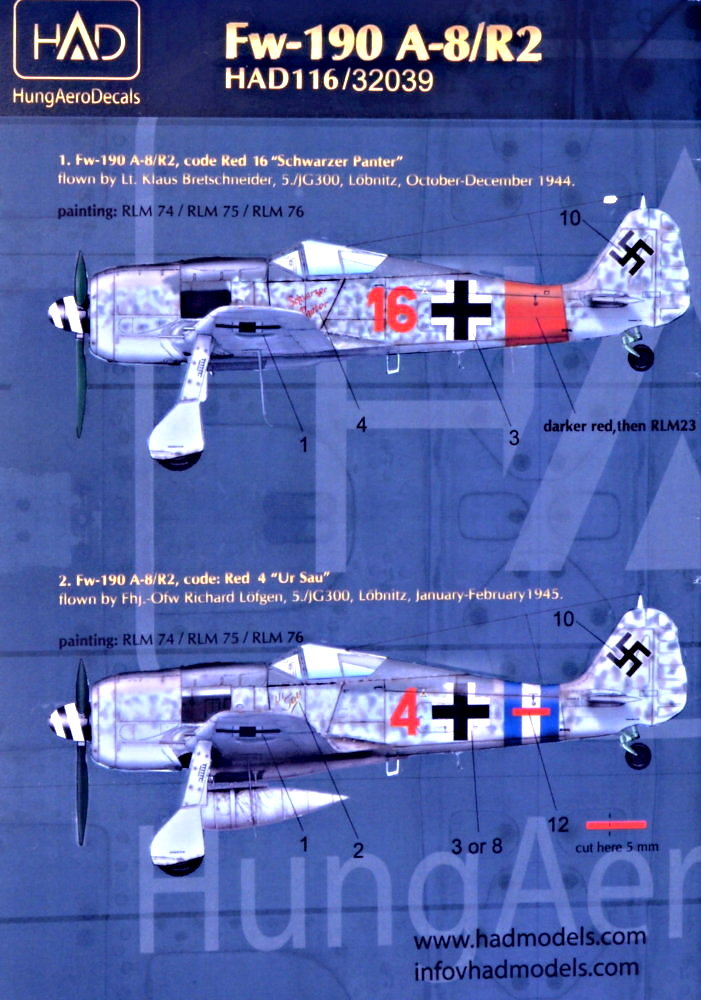 HAD - 1/72 Focke-Wulf Fw-190A-8/R2 (ur Sau red 16, red 4 Schwarzer panter)