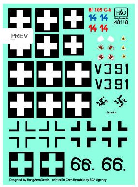 HAD - 1/72 Decal Bf 109 G-6 (66 Erzsike, 14, V391)