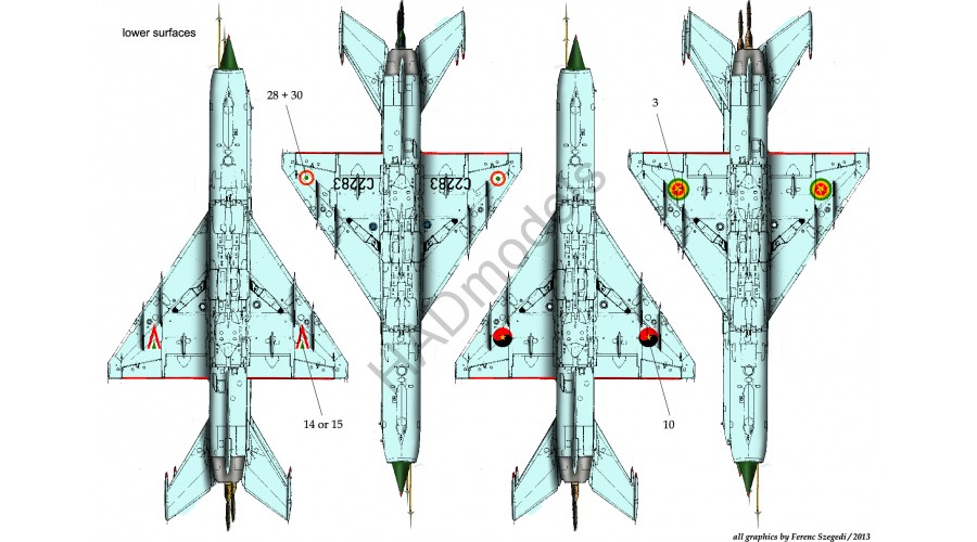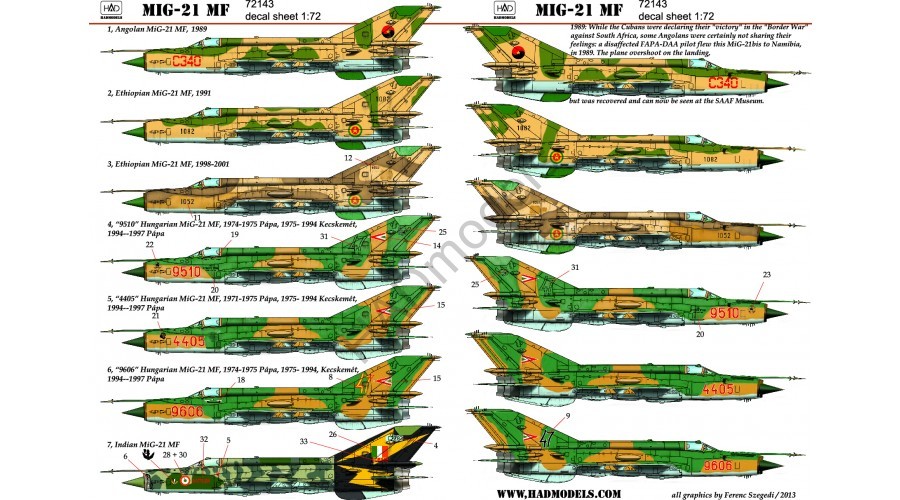 HAD - 1/72 Mikoyan Mikoyan MiG-21MF (HUnAF4405, 9606, 9510, Indian C2283, Angolan C340, Ethiopian 1082, 1052)
