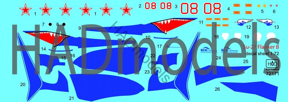 1/72 Decal Su-27 Flanker B Shark 08