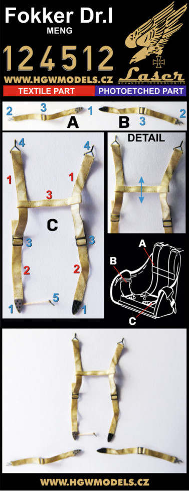 1/24 SET Spitfire Mk.VIII seatbelts STEEL for Airfix