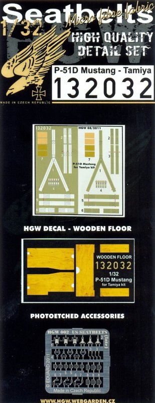 HGW - 1/32 North-American P-51D Mustang seatbelts . 2 sets of fabric belts with etched buckles And a wooden cockpit floor (for Tamiya kits) { textile seatbelts and wood grain decal (floor)}