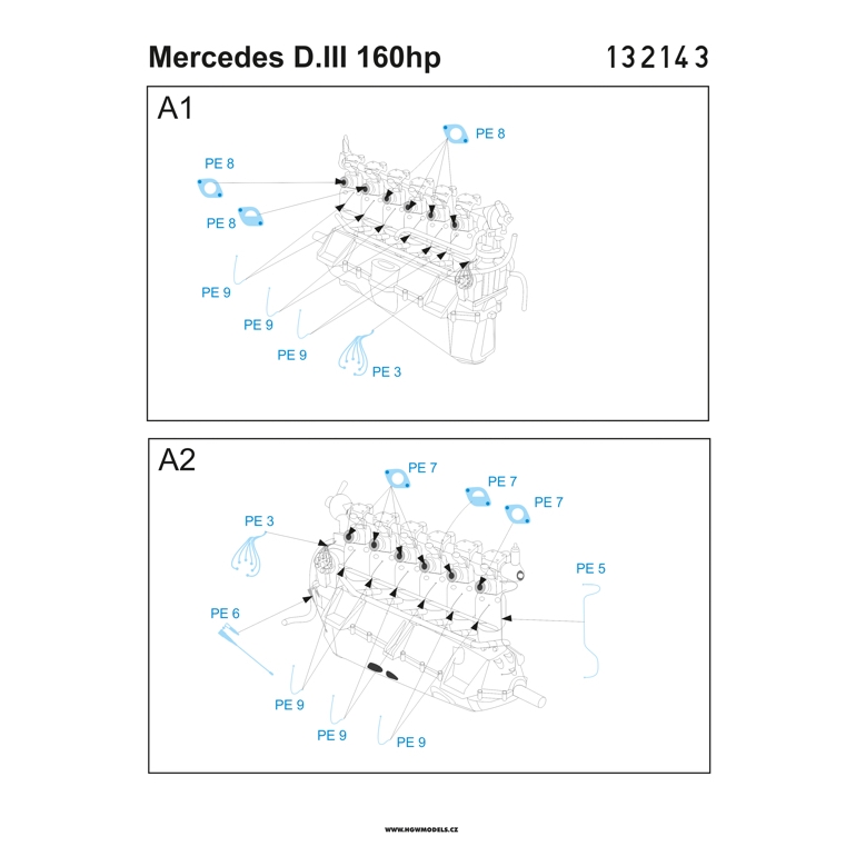 HGW - 1/32 Mercedes D.III 160 hp PE sets (for Wingnut Wings kits)
