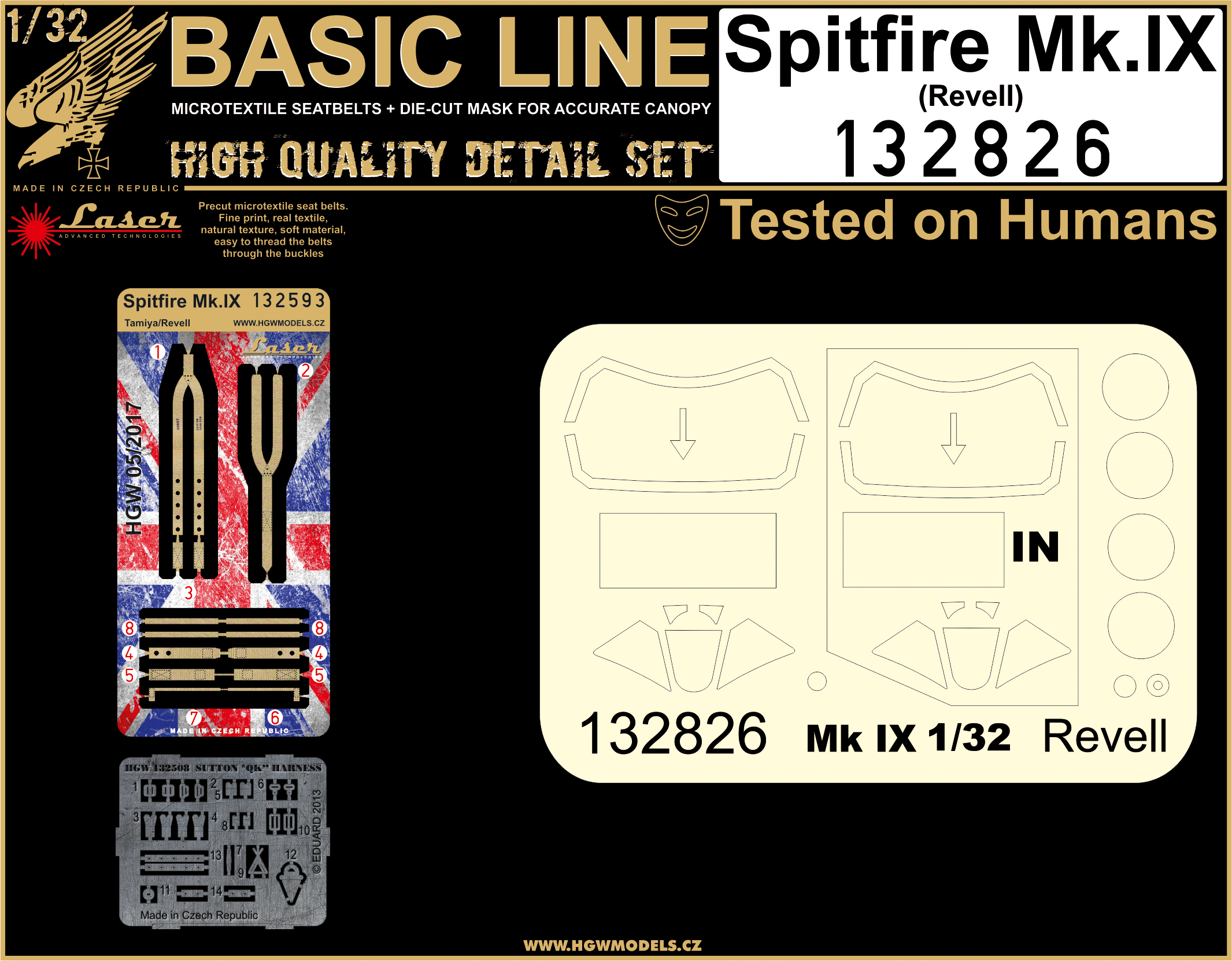 HGW - 1/32 Supermarine Spitfire Mk.IXC seatbelts + masks Basic Line set (for Revell and Tamiya kits)