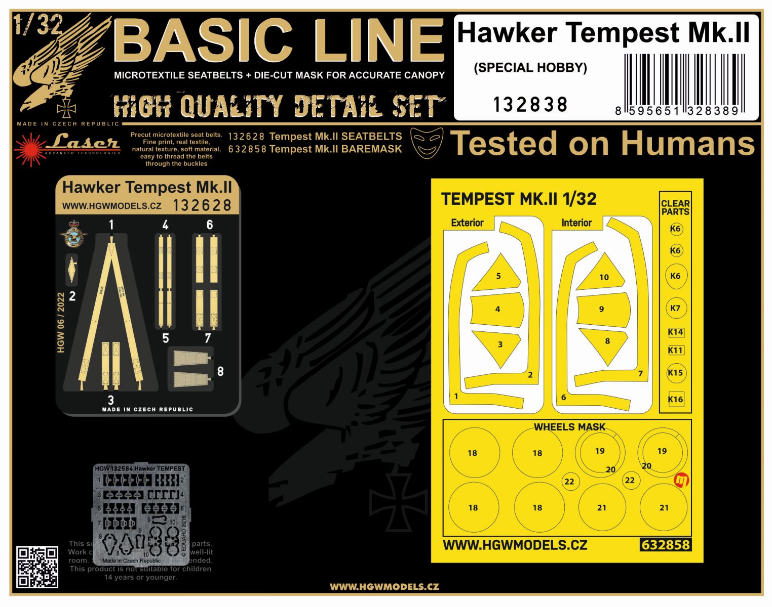 HGW - 1/48 Hawker Tempest Mk.II Basic LINE: seatbelts + masks (for Special Hobby kits)