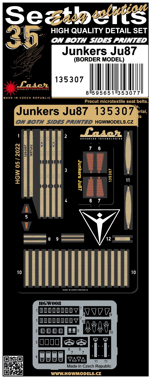 HGW - 1/35 Junkers Ju-87 'Stuka' pre-cut (laser) seatbelts (for Border Model kits)