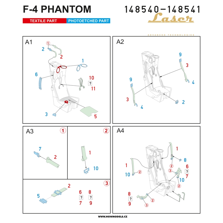 HGW - 1/48 F-4 Phantom (Army) pre-cut (laser) seatbelts (for Academy and Eduard kits)