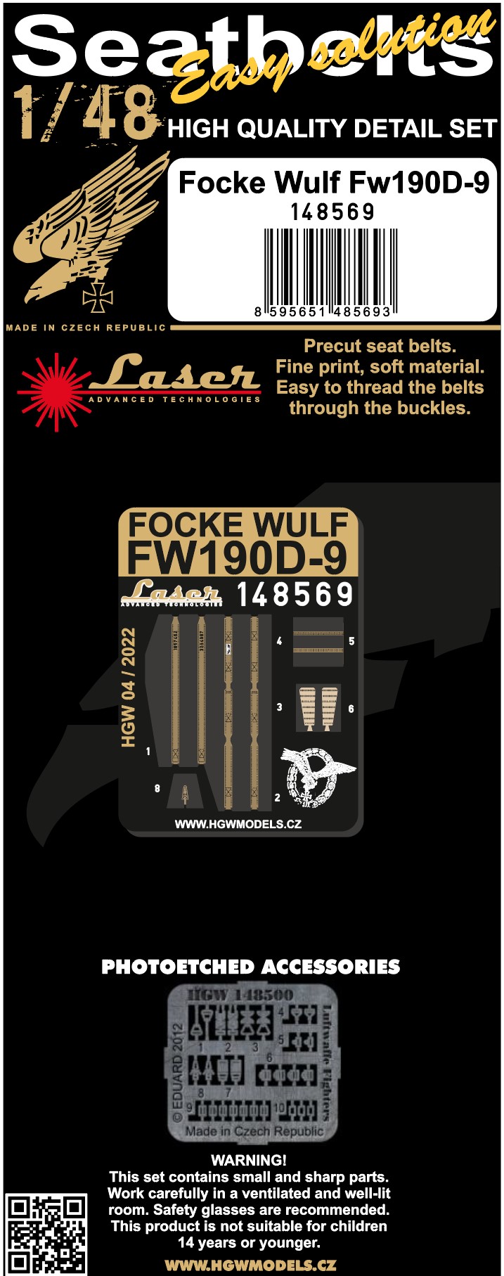 HGW - 1/48 Focke-Wulf Fw-190D-9 pre-cut (laser) Seatbelts