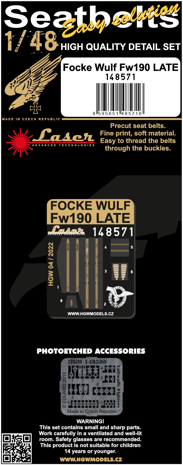HGW - 1/48 Seatbelts Focke Wulf Fw190 late (laser)