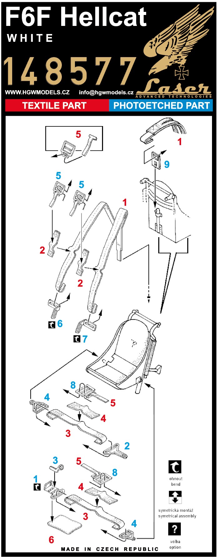 HGW - 1/48 Grumman F6F-3/F6F-5 Hellcat (White)pre-cut (laser) Seatbelts