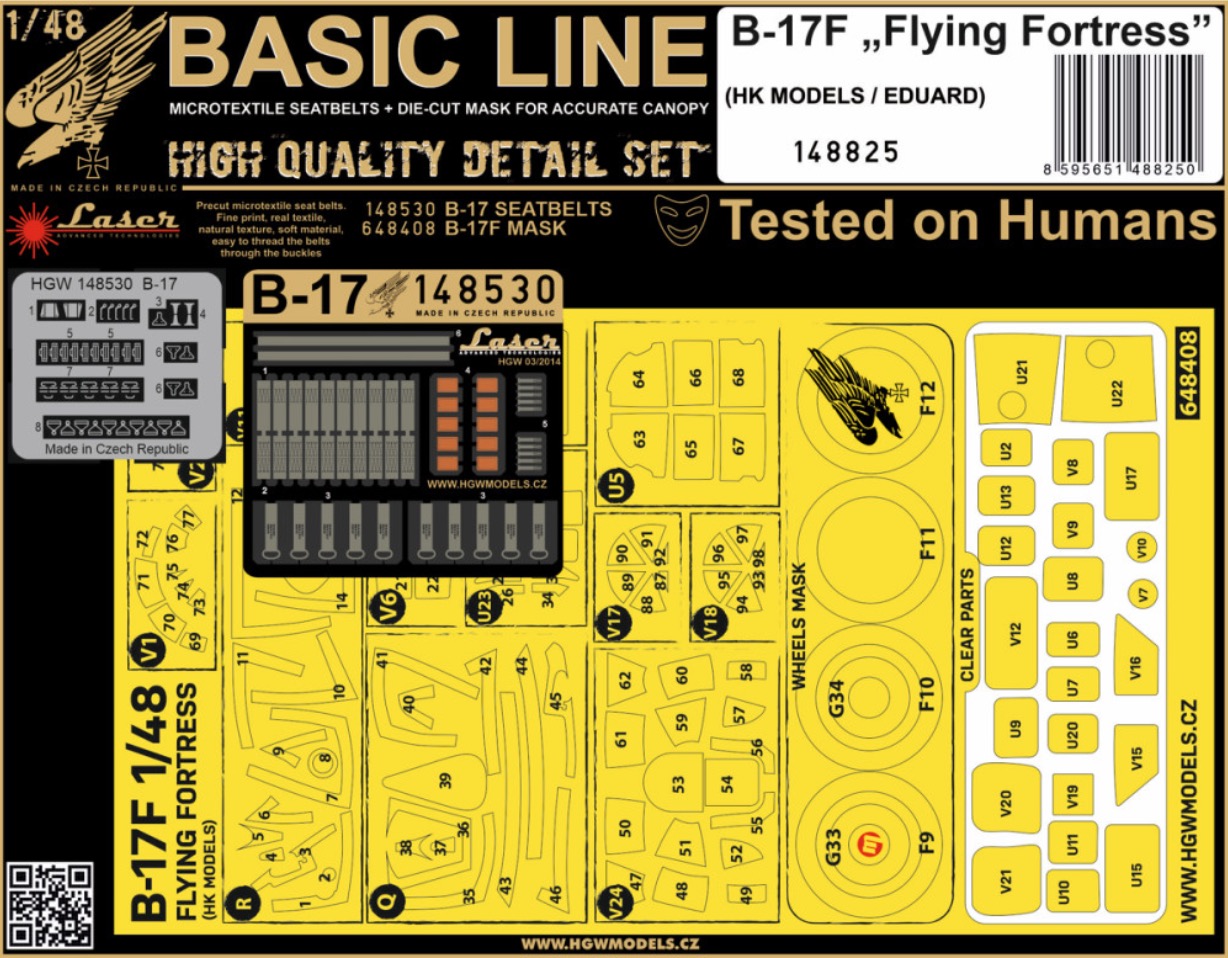 HGW - 1/48 Boeing B-17F Flying Fortress Seat belts & Paint masks Basic Line for Eduard and Hong Kong