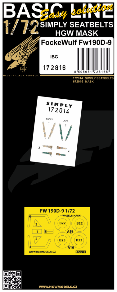 HGW - 1/72 Focke-Wulf Fw-190D-9 Basic LINE: seatbelts + masks (for IBG)