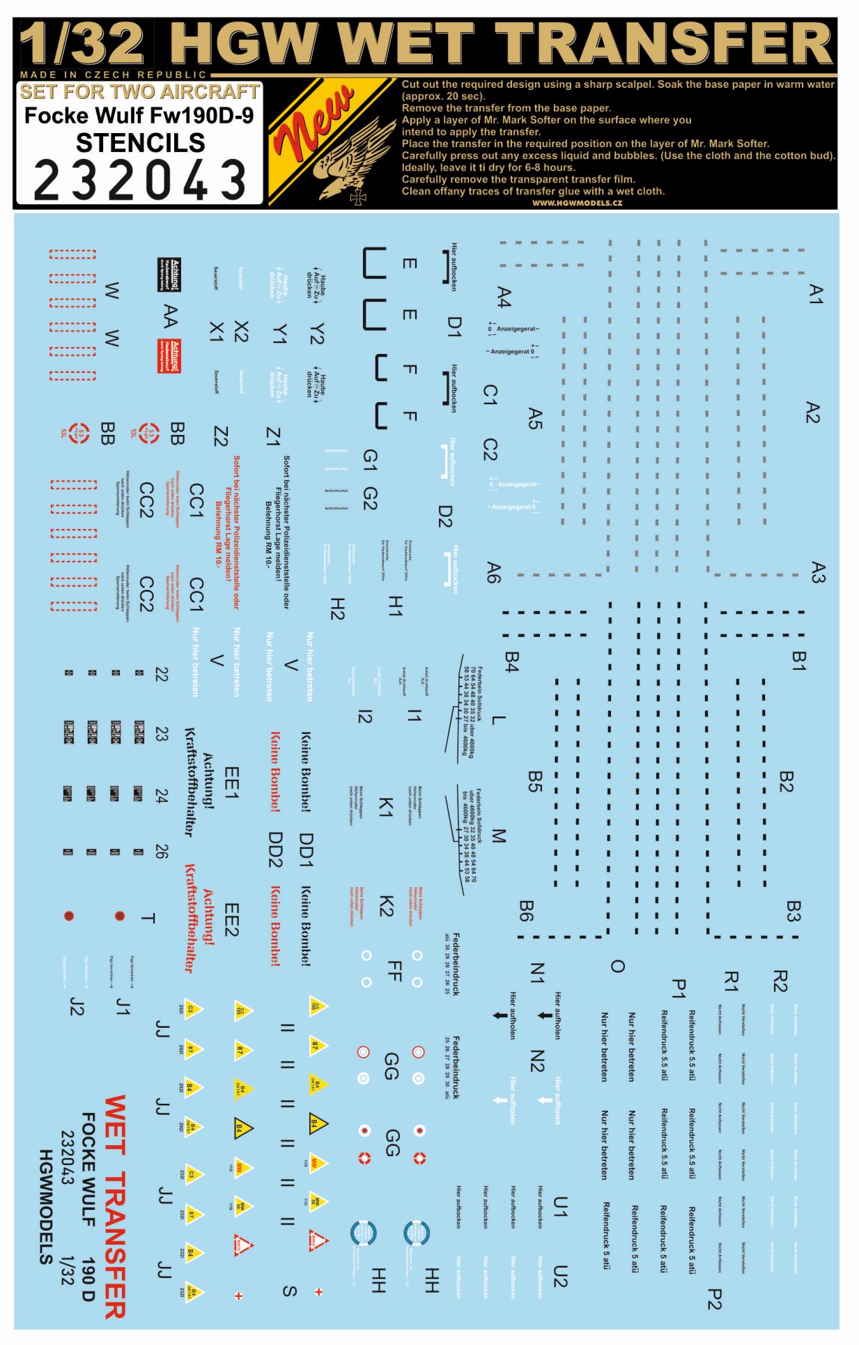 HGW - 1/32 Decals Focke Wulf Fw190D-9 Stencils